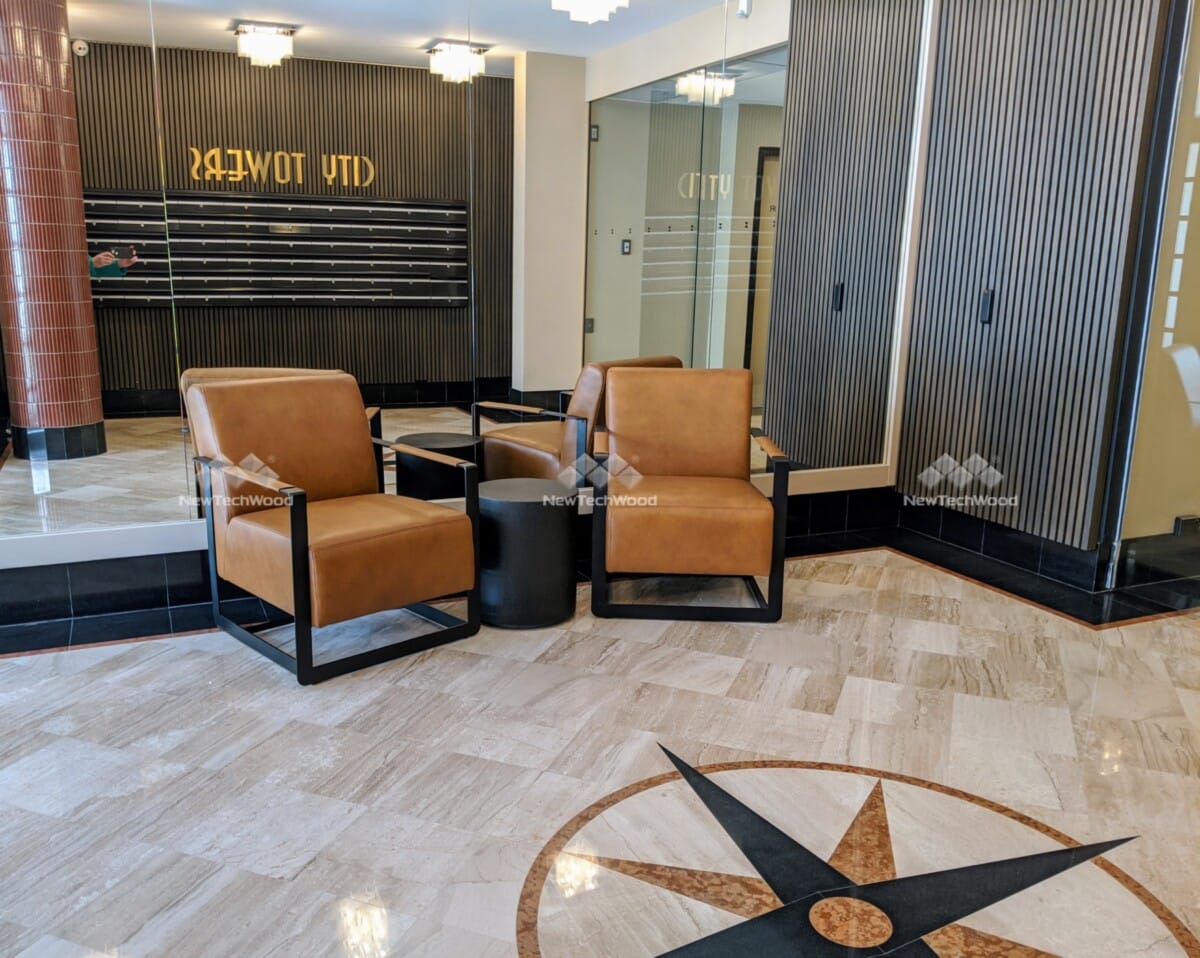 Catherine Lezer is a well known local name when it comes to project management of this calibre. It was pleasing to see NewTechWood popping up yet again in one of her projects. This time a commercial venture involving the refurbishment of the lobby in the renowned City Towers complex in East Perth, Western Australia.